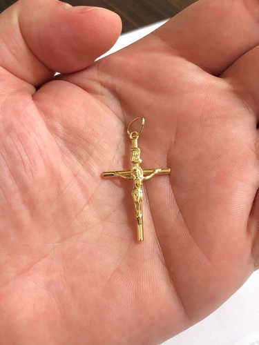 Feito em ouro 18k 750, este crucifixo destaca-se pela sua beleza e durabilidade. Perfeito para qualquer ocasião, ele adiciona um toque especial ao seu visual, seja em momentos importantes ou no dia a dia.