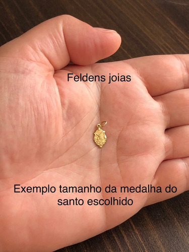 Detalhes do produto: - Peso: 0,3 gramas - Medidas: - Largura: 7 mm - Altura: 1,5 cm (considerando a argola) / 9 mm (sem argola) - O lado de trás da medalha é oco, oferecendo leveza e conforto ao uso. - Acabamento: Imagem fosca com borda polida, garantindo um brilho discreto e sofisticado. - Certificado de garantia incluso.