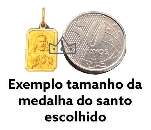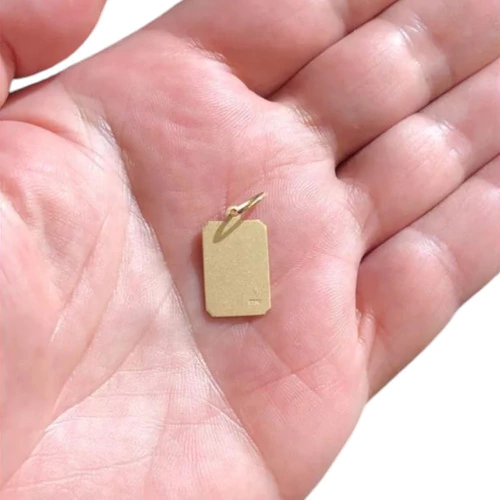 Características do Produto: - Material: Ouro maciço 18k 750 - Tamanho: Médio retangular, ideal para uso diário - Peso: Aproximadamente 2 gramas - Frente: Alto relevo com imagem do seu santo favorito - Verso: Liso, perfeito para gravações personalizadas