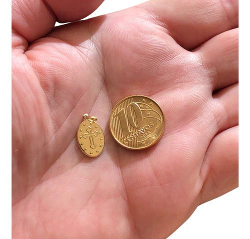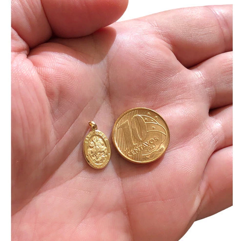 Desperte a sua fé com a Medalha São Jorge em Ouro 18k, uma peça que transcende o simples acessório e se transforma em um verdadeiro amuleto de proteção. Com um design oval pequeno, suas dimensões são de 1,3 cm de altura (sem contar a argola) e 0,9 cm de largura, oferecendo um toque discreto e cheio de significado.